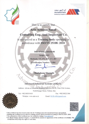- مجوز برگزاری دوره های آموزش NDT براساس ISO 9712 از شرکت تکاپو
