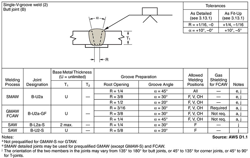 اين تلرانس‌ها به دو صورت ” As Detailed“ و ”As Fit up“ ليست شده‌اند. تلرانس‌هاي ” As Detailed“ مربوط به آزادي ابعادي جهت طراح هنگام طراحي مي‌باشد و تلرانس‌هاي ”As Fit up“ مربوط به خطاي مجاز در هنگام مونتاژ قطعات، بنابراين بازرس جوش هنگام كنترل اتصال قبل از جوشكاري مي‌بايد تلرانس‌هاي ” As Fit Up“ را مدنظر قرار دهد.