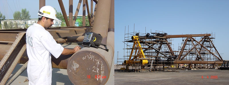 9- ارائه خدمات تست التراسونیک (UT) روی اتصالات جوش و مواد اولیه در پروژه ساخت و نصب سکوهای گازی و سازه های Offshore فاز 4 و 5 پارس جنوبی در بوشهر و عسلویه زیر نظر شرکت ENI ایتالیا در سال 2004 و 2005
